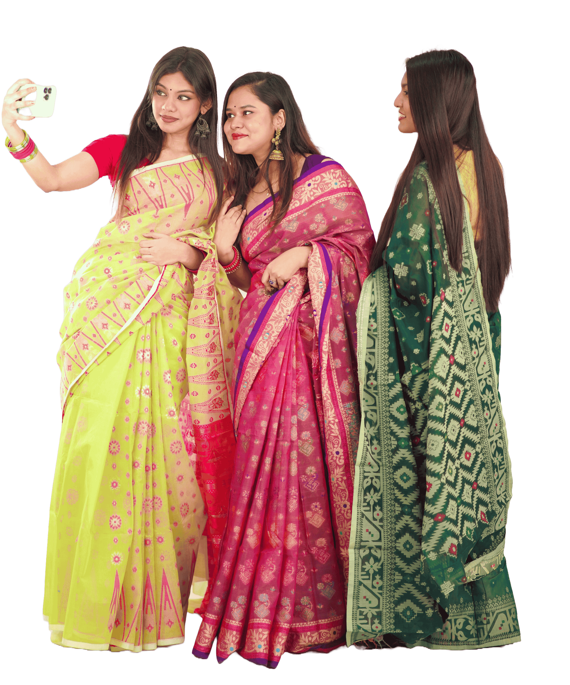 Ivory Gold Woven Jamdani Stain Silk Saree